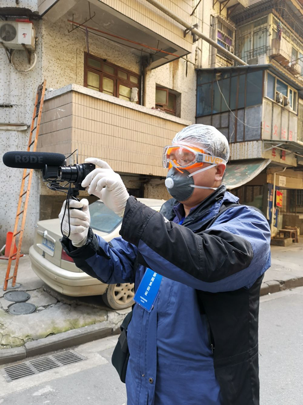 每次出門采訪都如臨大敵:先換好外出的衣裳、戴好醫(yī)用手套、戴好護目鏡,然后再小心翼翼地在臉上加上一個或兩個口罩,在門口換上出門的鞋,最后再背上采訪設(shè)備——每次做完這些的時候,作為胖子的我身上已經(jīng)開始冒汗并且氣喘吁吁。如果要去醫(yī)院采訪,有時候還要再穿上一件防護服。這樣的裝備,出門走一圈其實已經(jīng)很難受了,而我還要隔著不斷產(chǎn)生霧氣的護目鏡拍照,要不斷地移動、尋找最好的拍攝角度和位置,采訪的時候更要記下一個個口罩后面的名字、故事......這樣的采訪狀態(tài)對我而言,從未曾經(jīng)歷過——多年前,我曾在利比亞做過戰(zhàn)地記者,也曾被武裝分子用槍指著腦袋,但這次在武漢,我不知道那些危險的“敵人”究竟藏在何方,也許就在無處不在的空氣里!