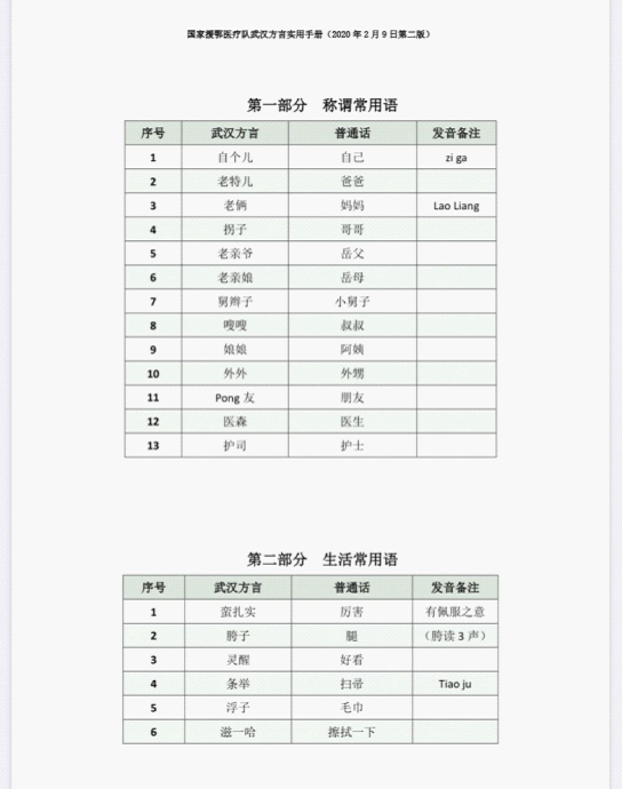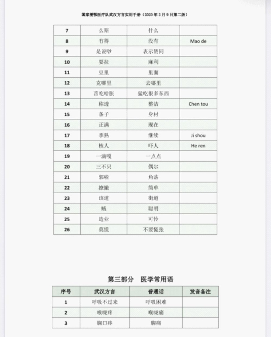 《國家援鄂醫(yī)療隊(duì)武漢方言實(shí)用手冊》