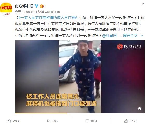 比如,一家三口在家里圍桌打麻將,突然有防疫工作人員進(jìn)來,不由分說開始打砸,一位年輕人表示不服,竟被連抽幾個(gè)耳光;一位中年男子下樓買菜,進(jìn)小區(qū)時(shí)拒絕登記,與工作人員產(chǎn)生沖突,最終被幾名工作人員摁倒在地;一位東北大娘在外溜達(dá)時(shí)沒戴口罩,與社區(qū)干部發(fā)生沖突,甚至拳腳相加,最終被戴上手銬抓進(jìn)警車……