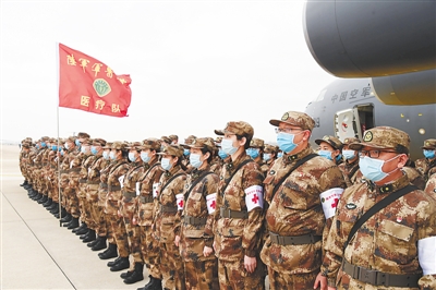 一批增援武漢的軍隊醫(yī)護(hù)人員抵達(dá)武漢天河機(jī)場。新華社發(fā)
