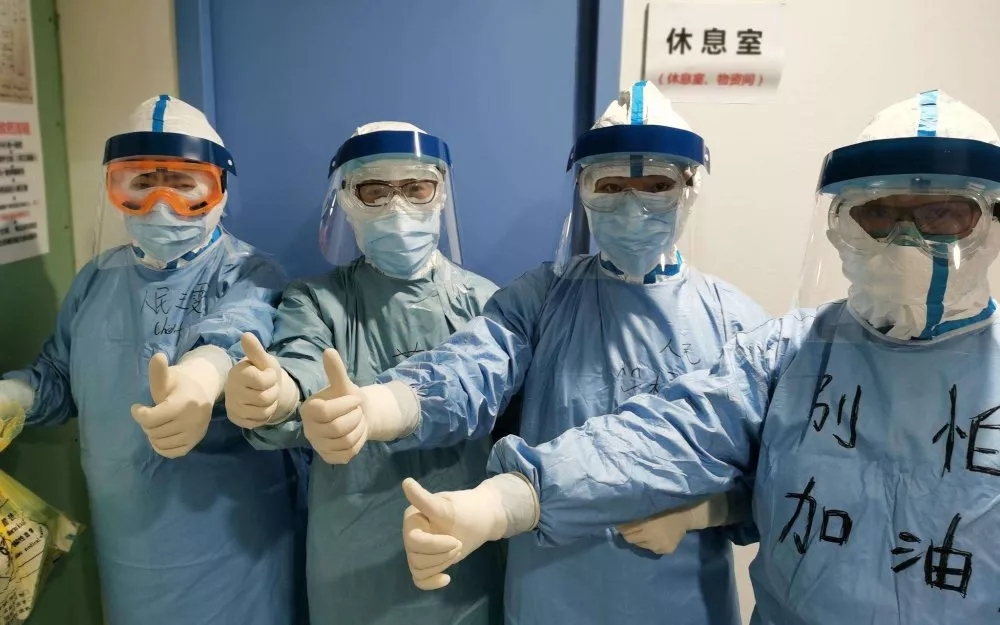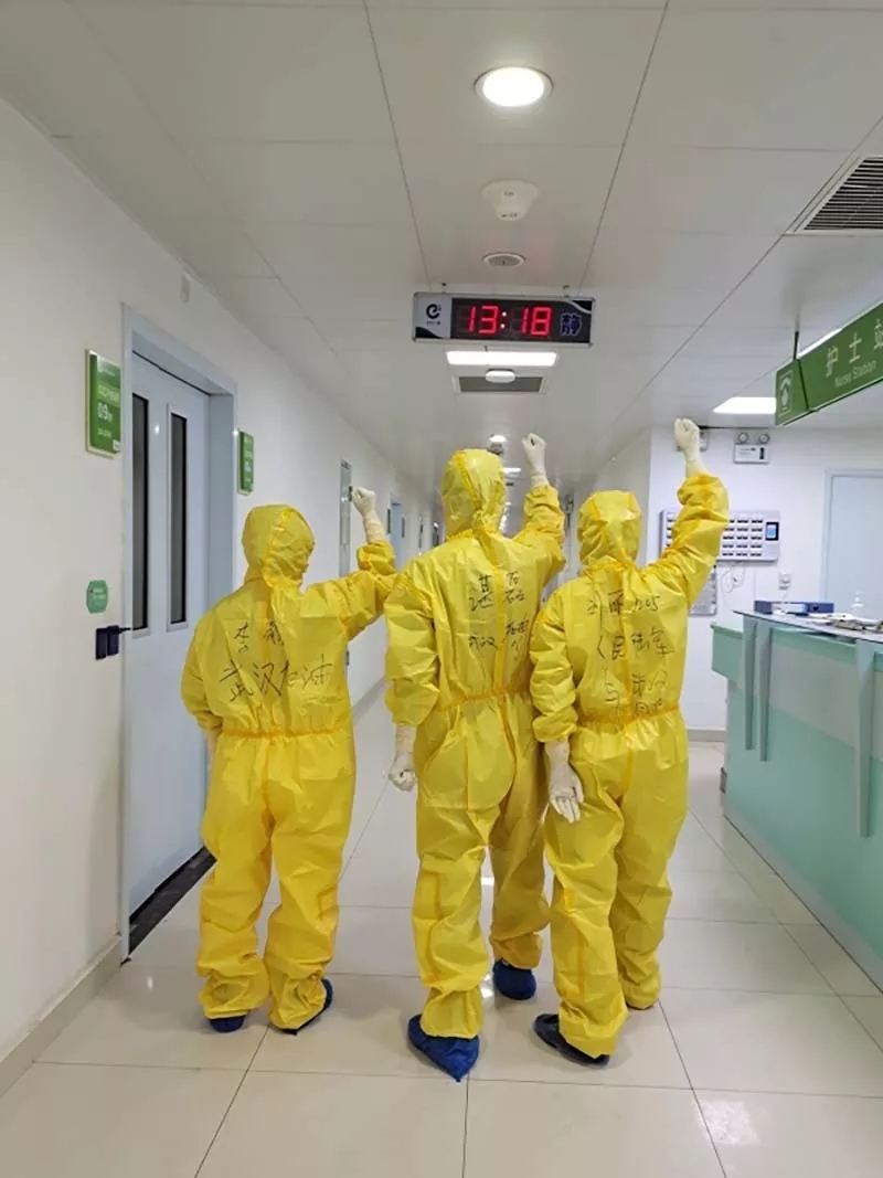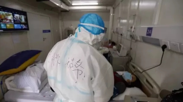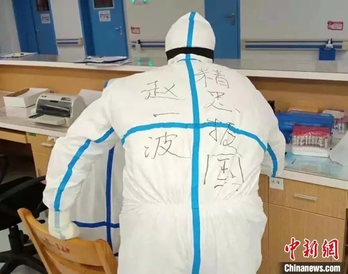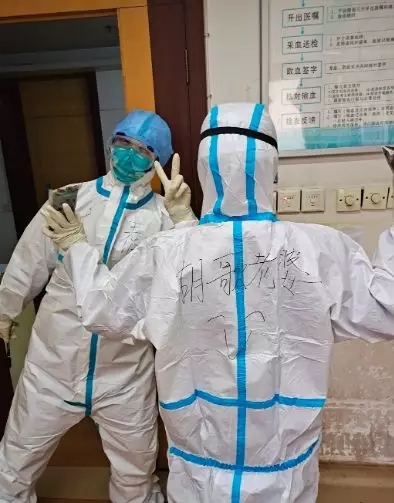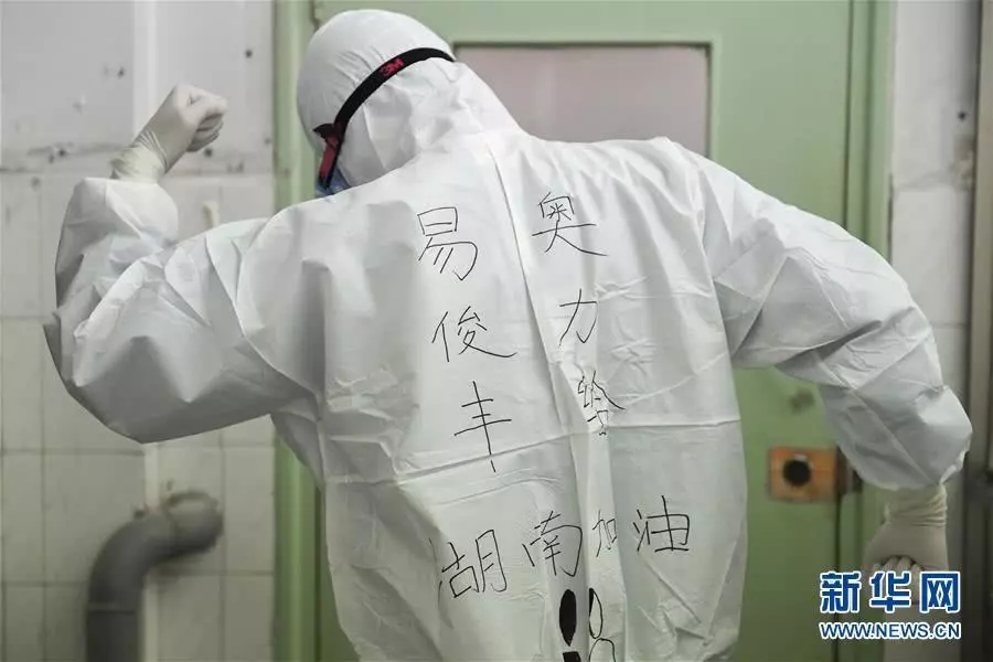 在防護(hù)服上寫(xiě)下了“武漢加油”
