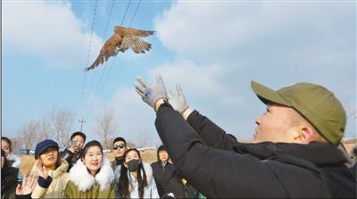 山東省青島市城陽(yáng)區(qū)野生動(dòng)植物保護(hù)志愿者在白沙河入海口濕地,放歸一只救助的國(guó)家二級(jí)重點(diǎn)保護(hù)動(dòng)物紅隼。 王海濱攝