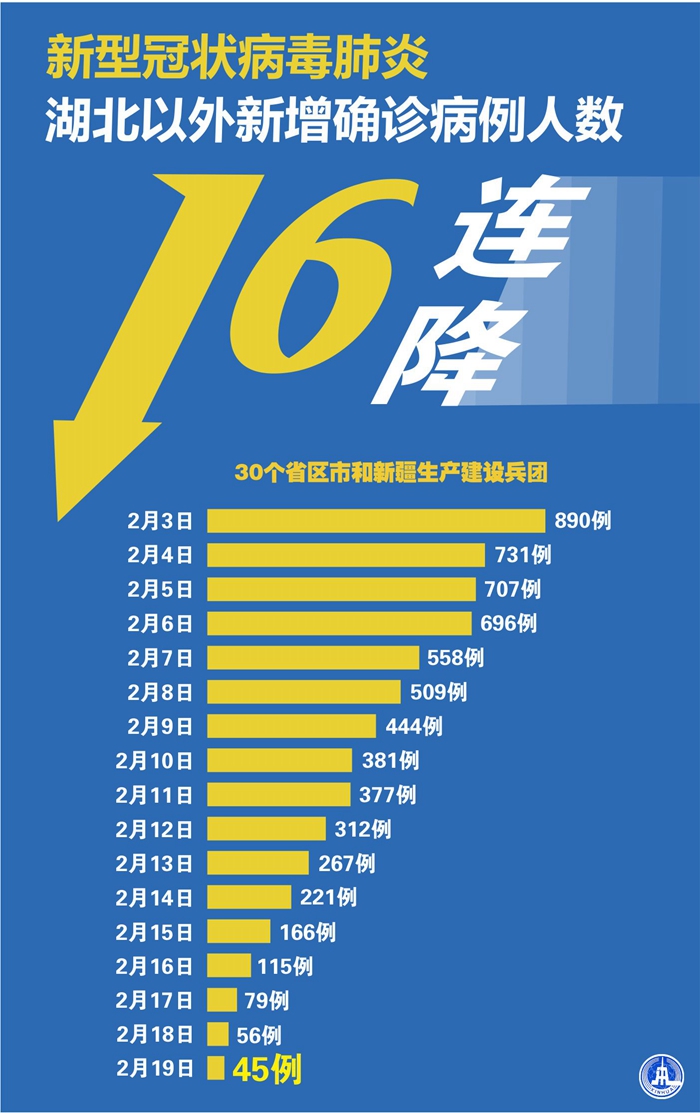 截至2月19日24時,據(jù)31個省(自治區(qū)、直轄市)和新疆生產(chǎn)建設兵團報告,現(xiàn)有確診病例56303例(其中重癥病例11864例),累計治愈出院病例16155例,累計死亡病例2118例,累計報告確診病例74576例(江西、河南、云南省各核減1例),現(xiàn)有疑似病例4922例。累計追蹤到密切接觸者589163人,尚在醫(yī)學觀察的密切接觸者126363人。