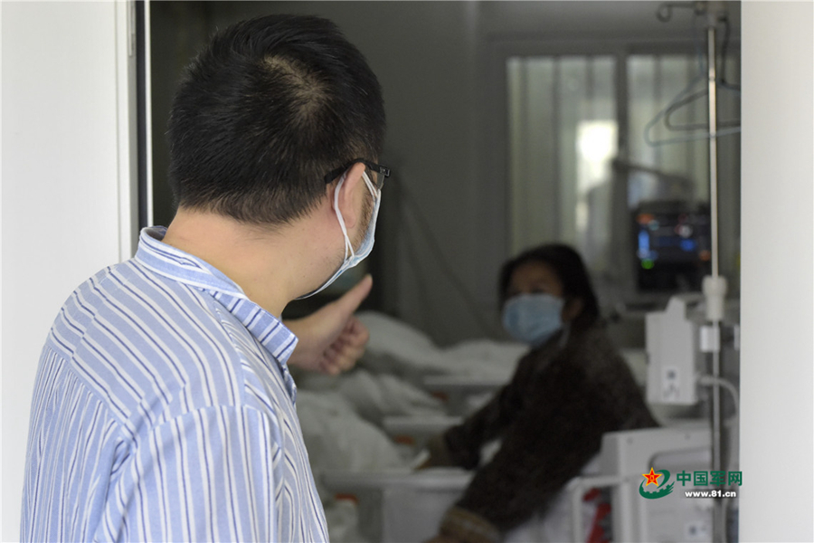 住院期間,萬(wàn)先生為其他患者加油鼓勁。中國(guó)軍網(wǎng)記者范顯海 攝