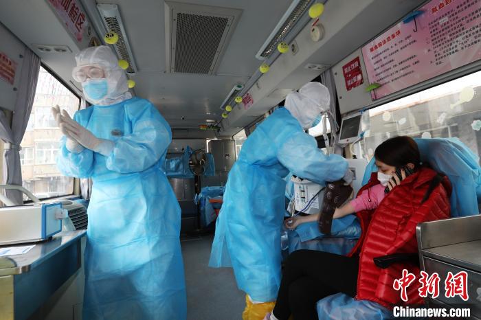 2月21日,河北省張家口市4名新冠肺炎康復者在該市中心血站采血車上成功捐獻血漿共800毫升。