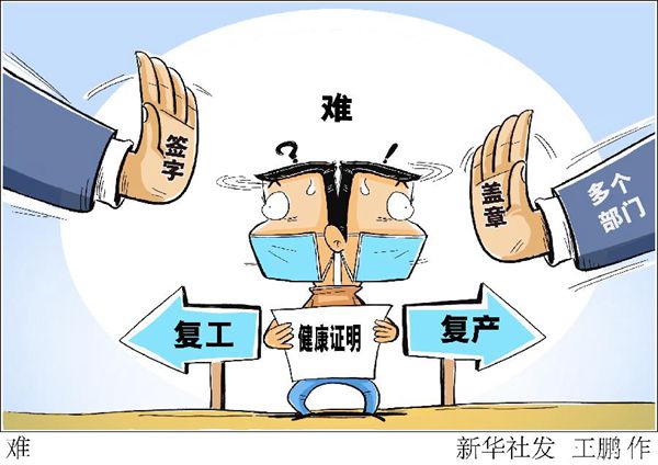 根據中央部署,全國不少地方在嚴抓疫情防控的基礎上,正逐步開展復工復產。“新華視點”記者接到一些群眾和企業反映,返程上班和恢復生產,在辦理相關證明過程中遭遇不少形式主義的煩惱。