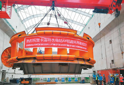 “中巴經濟走廊”優先實施項目巴基斯坦卡洛特水電站最后一套座環、基礎環成功吊裝。三峽集團供圖