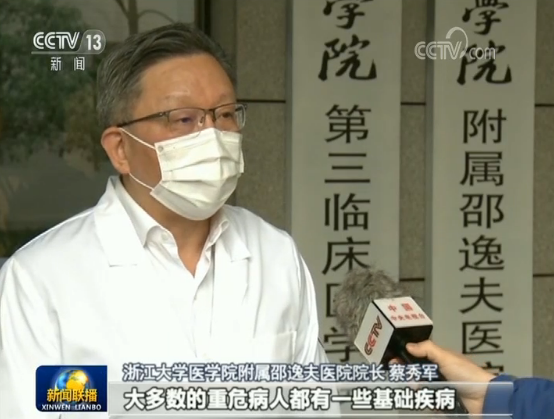浙江大學(xué)醫(yī)學(xué)院附屬邵逸夫醫(yī)院院長(zhǎng) 蔡秀軍:大部分的重危病人都有一些基礎(chǔ)疾病,所以我們一人一方案提高他搶救的成功率,舉行了多次的網(wǎng)絡(luò)的遠(yuǎn)程會(huì)診,整合前方和后方的醫(yī)療資源,使治療方案更加科學(xué)、更加合理。