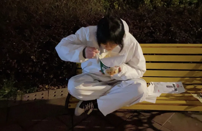 有天凌晨加班加點搶建完ICU病區(qū),宿舍沒通電也沒開水,我們從門衛(wèi)那里接了電,借了開水壺,每人一桶泡面,又是宵夜又是早餐。