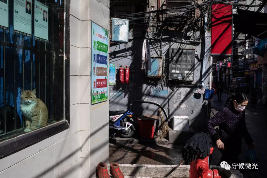 2月16日,湖北省武漢市,民生社區花樓街,趁著晴天,不少小區的居民都走出家門,或是采購物資,或是曬曬太陽。中國青年報 李雋輝/攝