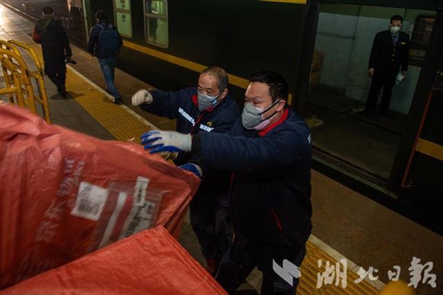 據武昌火車站值班人員介紹,疫情發生以來,行包車間每天大約要裝卸轉運7000余件防疫物資,運送物資的“帶貨”列車,大多都是凌晨抵達。一個通宵班里,裝卸工人均要搬運400件貨物,駕駛員人均往返轉運50多趟。