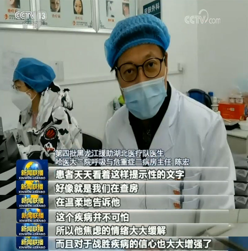 “繼續(xù)努力,早日出院”“新冠必?cái)。貏佟薄皥?jiān)持就是勝利”,在武漢市第一醫(yī)院16樓重癥病區(qū),幾乎每位患者床頭都貼有一張寫(xiě)著鼓勵(lì)話語(yǔ)的淡粉色紙卡,而這些都出自前來(lái)支援的哈爾濱醫(yī)科大學(xué)附屬第二醫(yī)院呼吸科陳宏醫(yī)生之手。