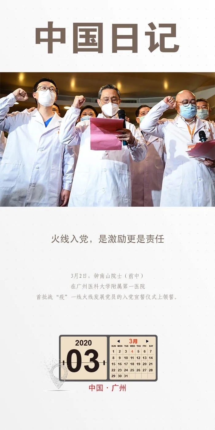 3月2日下午,一場特殊的入黨宣誓儀式在廣州和武漢兩地舉行。廣州醫(yī)科大學(xué)附屬第一醫(yī)院與廣東省馳援武漢醫(yī)療隊通過遠(yuǎn)程視頻連線,舉行首批戰(zhàn)“疫”一線火線發(fā)展黨員入黨宣誓儀式,鐘南山院士領(lǐng)誓。