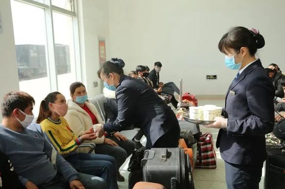 在列車上,庫爾勒客運段設(shè)置了隔離室,每2小時對務(wù)工人員測溫,增加對列車內(nèi)部設(shè)施設(shè)備消毒頻次,列車廣播循環(huán)播放新冠肺炎預防知識宣傳,確保務(wù)工人員順利抵達目的地。