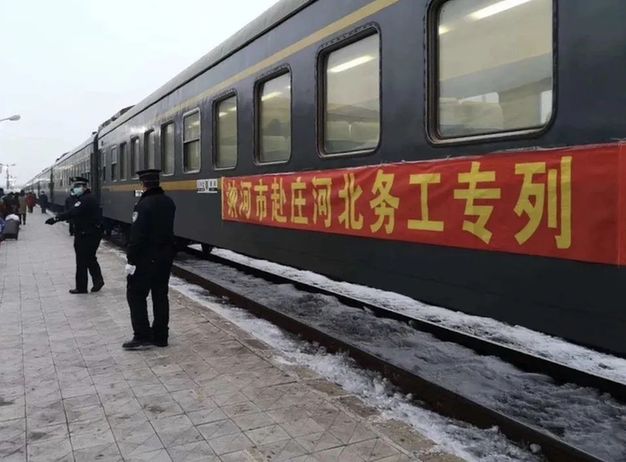 了解這一情況后,沈陽局集團公司高度重視,積極與莊河市政府、哈爾濱局集團公司溝通協(xié)商,不到4天時間就制訂了“黑龍江訥河至莊河‘點對點’農(nóng)民工復工專列”的開行方案。