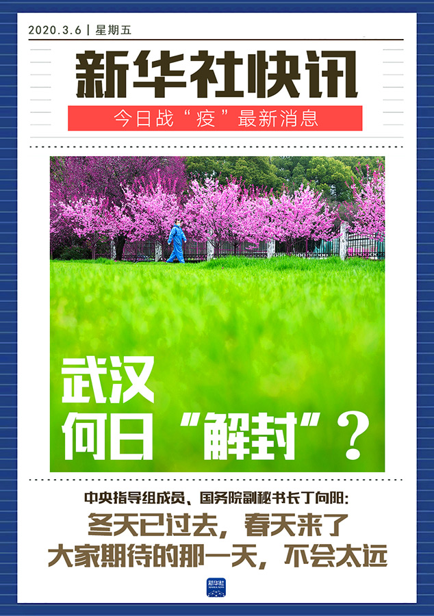 丁向陽(yáng)說(shuō),隨著湖北、武漢疫情形勢(shì)的好轉(zhuǎn),有關(guān)方面將會(huì)根據(jù)《中華人民共和國(guó)傳染病防治法》和《突發(fā)公共衛(wèi)生事件應(yīng)急條例》有關(guān)規(guī)定,報(bào)經(jīng)同意后,會(huì)及時(shí)進(jìn)行調(diào)整。“冬天已過(guò)去,春天來(lái)了。大家期待的那一天不會(huì)太遠(yuǎn)了。”