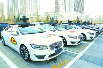 去年年底,在北京經(jīng)濟(jì)技術(shù)開(kāi)發(fā)區(qū),準(zhǔn)備進(jìn)行自動(dòng)駕駛載人載物測(cè)試的車(chē)輛等候出發(fā)。新華社發(fā)