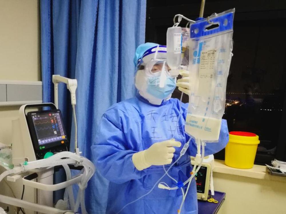 沒(méi)有時(shí)間坐下來(lái),緊接著需要檢查各個(gè)儀器運(yùn)轉(zhuǎn)是否正常、管路連接是否完好,最后幫患者擦拭了身體,保持患者皮膚清潔干燥是我們護(hù)理的要求。自己又是一身汗,我覺(jué)得防護(hù)服里面的衣服已經(jīng)貼在了身上。