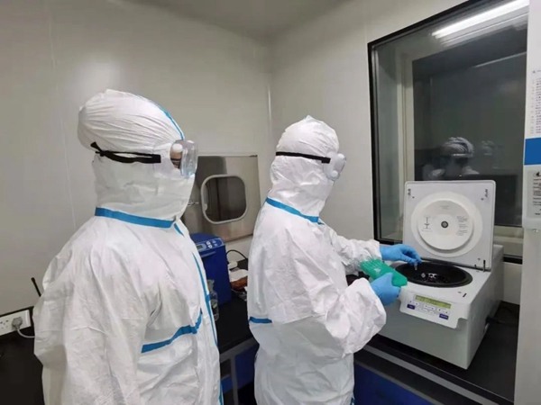 天津市河西區(qū)疾控中心核酸檢測實驗室工作人員在病毒檢測中進(jìn)行核酸提取。新華社發(fā)