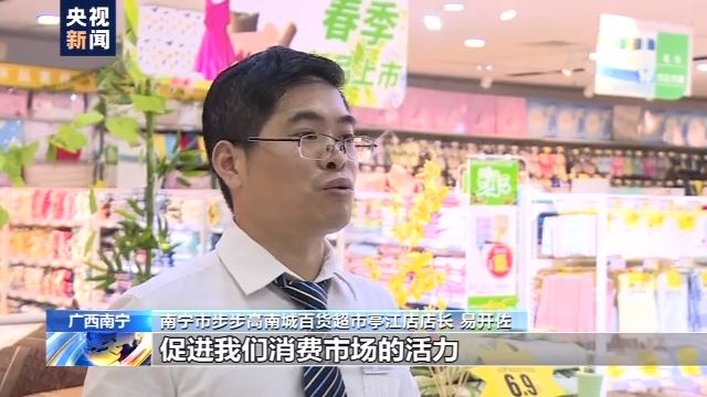廣西南寧市步步高南城百貨超市亭江店店長 易開佐:通過這個活動,給我們消費者帶來更多的實惠,同時也促進我們企業復工復產,促進我們這個消費市場的活力。