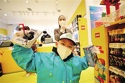 3月30日,武漢市楚河漢街重新開(kāi)街,多家主力商鋪率先營(yíng)業(yè)。圖為一位小朋友在家長(zhǎng)的帶領(lǐng)下購(gòu)買(mǎi)心儀的玩具。光明日?qǐng)?bào)武漢一線報(bào)道組記者蔡闖、季春紅攝/光明圖片