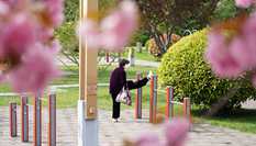 巖樓村即將離任的駐村第一書記黃海棠在查看村民家門口即將通水的水龍頭(3月26日攝)。新華社記者 向志強 攝