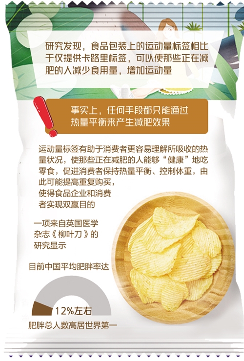 如果,當你買了一包薯片正打算吃時,卻發現包裝袋上寫著“該薯片120卡路里,需要快跑19分鐘才能消耗這些熱量”,那么你還會繼續吃下去嗎?