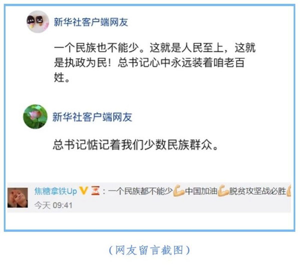 總書記還說:“各民族團結攜手,共同邁進全面小康,體現了中華民族優良傳統,體現了中國特色社會主義制度的顯著優勢。”對此,網民認為既貼心又有分量。