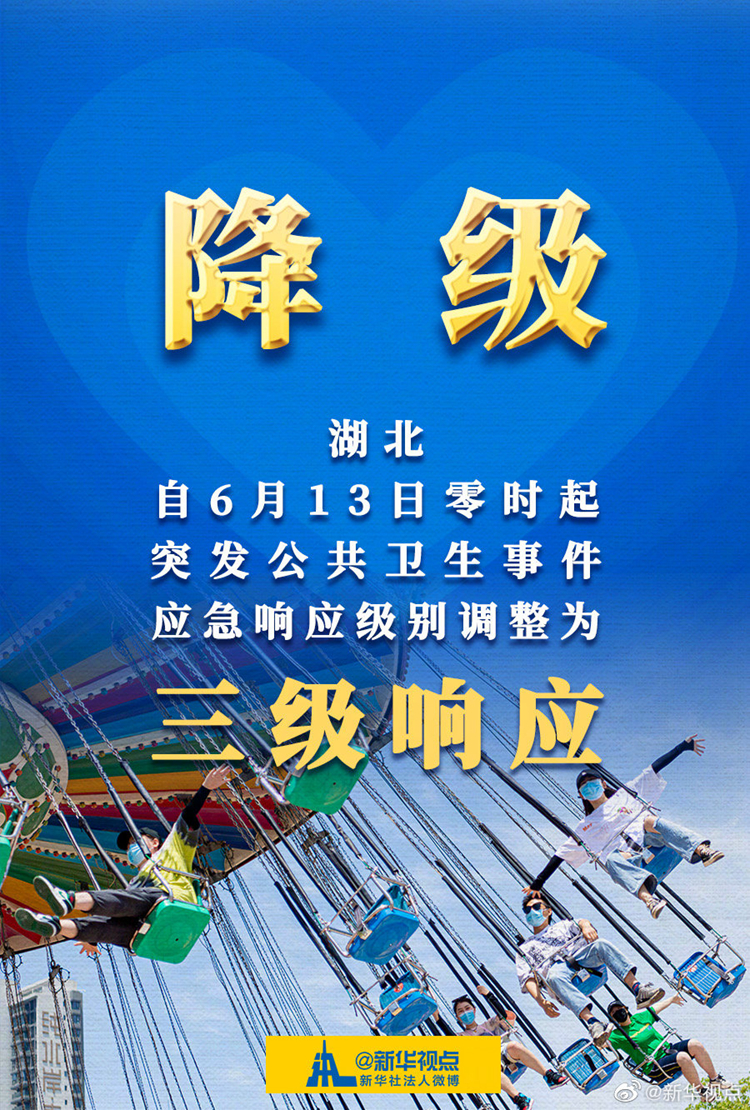 自6月13日零時起,湖北省突發公共衛生應急響應級別由二級調整為三級,并相應調整優化有關防控措施。(記者 李偉 樂文婉)
