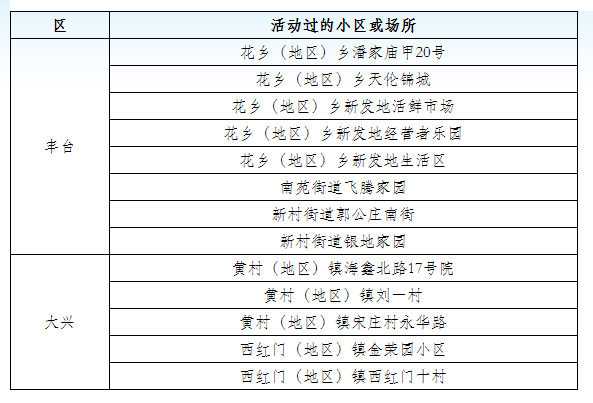 北京公布6月16日-18日新冠肺炎新發病例活動小區或場所
