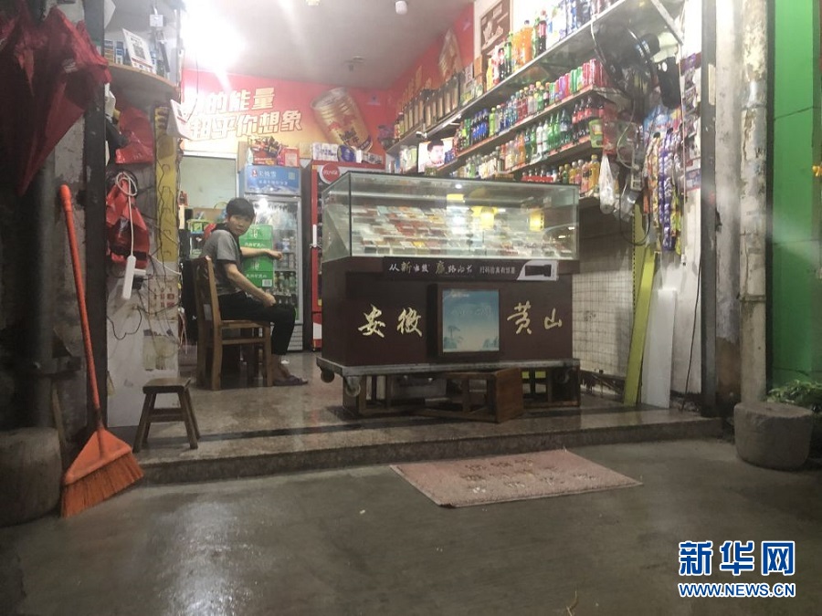 不遠(yuǎn)處,已在老街做了20多年生意的蔣圣立正在清理店里的貨物,地面濕漉漉的。“水進(jìn)了柜臺,一些茶葉包裝盒來不及搬,被水泡了,水最深時(shí)淹到小腿了。”他捋起褲管說,“很多年沒有見過這樣大的水了,我得趕緊收拾干凈,希望明天能照常營業(yè)。”