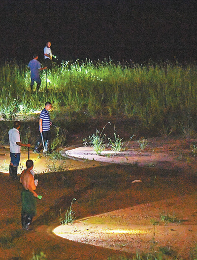 11日,湖南岳陽市君山區的洞庭湖大堤上,抗洪人員在巡堤查險。新華社記者 陳澤國攝