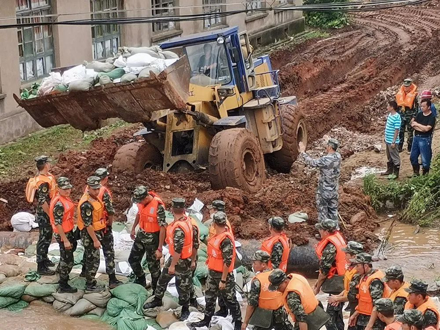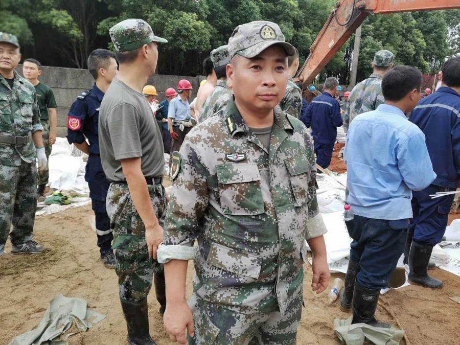 當(dāng)?shù)負(fù)岆U(xiǎn)人員、武警安徽總隊(duì)池州支隊(duì)140名武警官兵第一時(shí)間趕赴現(xiàn)場,東至縣人武部同時(shí)組織90名地方民兵緊急支援,陳壽春位列“前鋒”。