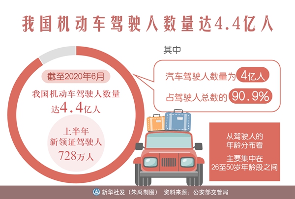 新華社北京7月18日電(記者劉奕湛)公安部交管局日前發(fā)布數(shù)據(jù)顯示,截至2020年6月,我國機動車駕駛?cè)藬?shù)量達4.4億人,上半年新領證駕駛?cè)?28萬人。