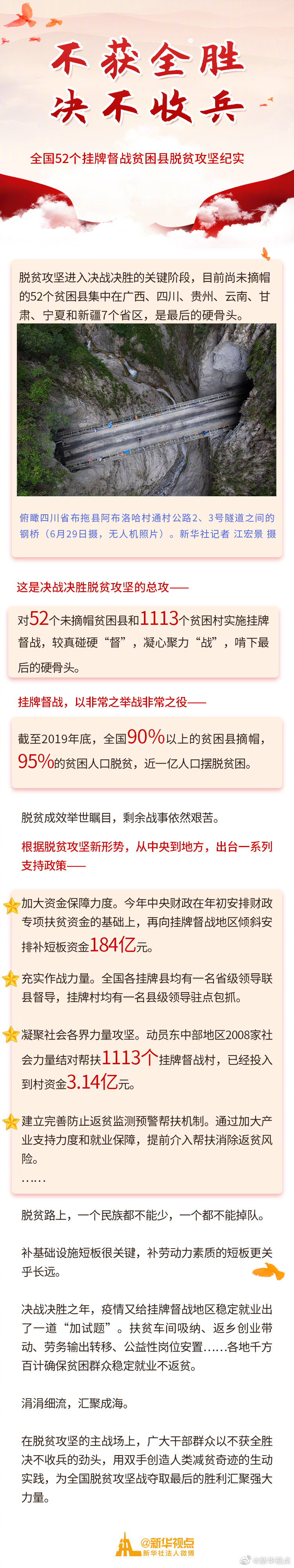 對52個未摘帽貧困縣和1113個貧困村實施掛牌督戰,較真碰硬“督”,凝心聚力“戰”,啃下最后的硬骨頭。