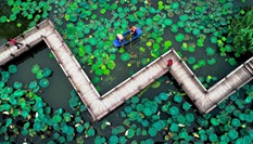 新華社鄭州9月21日電(記者牛少杰 何娟)在開封市祥符區劉店鄉,一萬多畝萬壽菊正在盛開,橙黃色的花朵鋪滿灘區,不少群眾戴著草帽在花叢中忙碌。