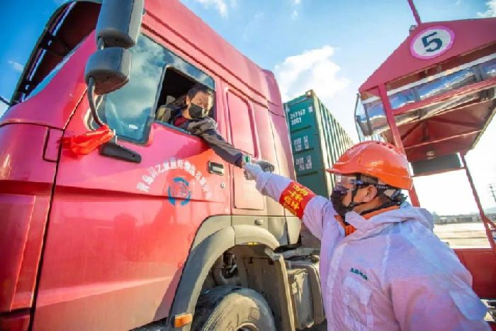 疫情發生后,按照當地衛健委和山東省港口集團黨委部署,青島港第一時間啟動應急預案,成立疫情防控應急指揮部和8個疫情防控督導組,從貨物處置、人員隔離、篩選排查等各方面迅速響應,防止疫情擴散。