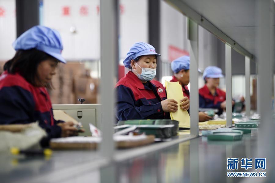 在位于寧夏西吉工業園區的寧夏澤艾堂生物科技有限公司,工人在包裝艾草產品(9月17日攝)。新華社記者 王鵬 攝