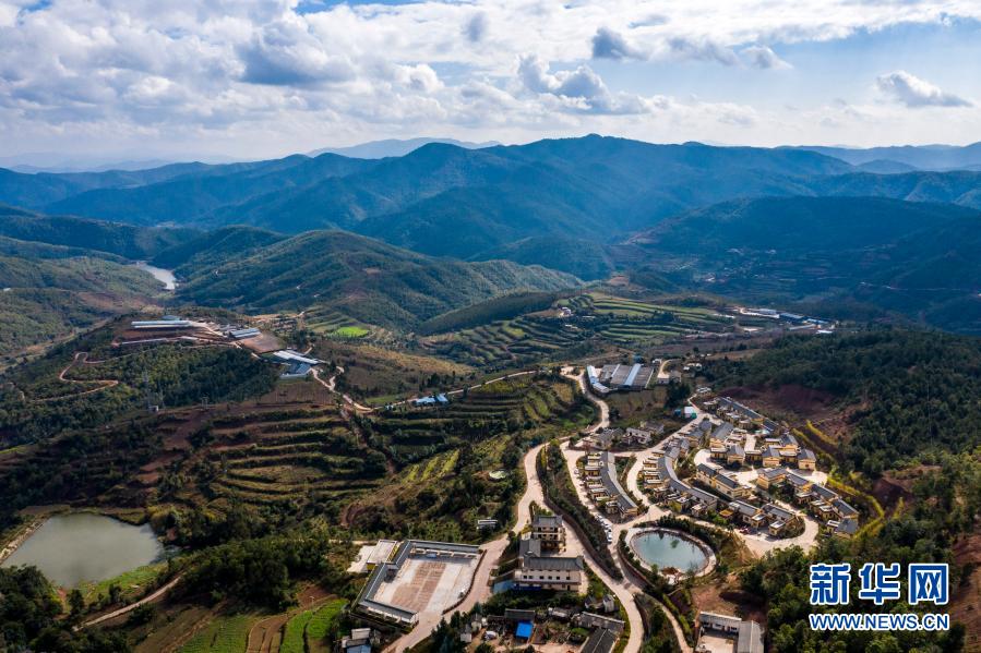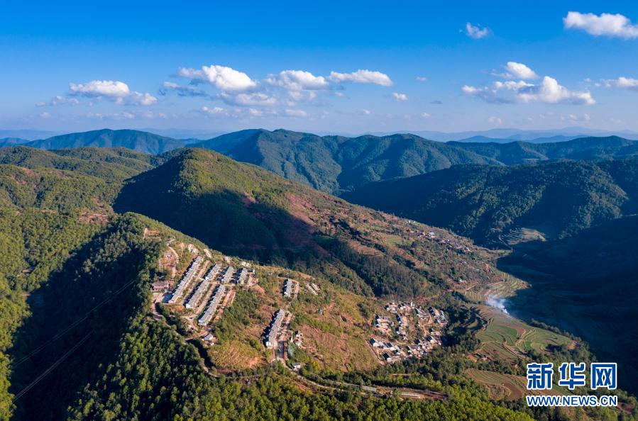 群山中的云南省楚雄市子午鎮挖銅村埂么村民小組(11月30日攝,無人機照片)。新華社記者 江文耀 攝