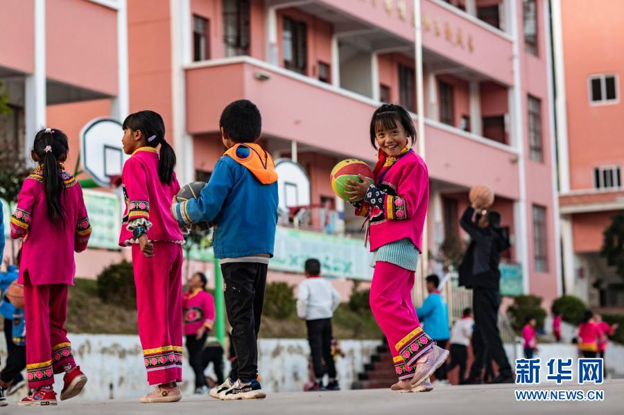 云南省楚雄市子午鎮挖銅村挖銅小學的孩子在操場玩耍(11月30日攝)。新華社記者 江文耀 攝