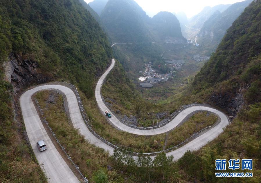 廣西百色市凌云縣泗城鎮(zhèn)隴雅村境內(nèi)的道路(2017年3月12日攝,無(wú)人機(jī)照片)。新華社記者 陸波岸 攝