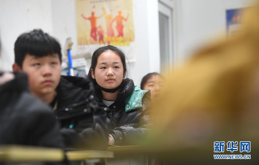 韓景芳(左二)在阜平縣龍泉關學校教室上課(11月25日攝)。新華社記者 朱旭東 攝