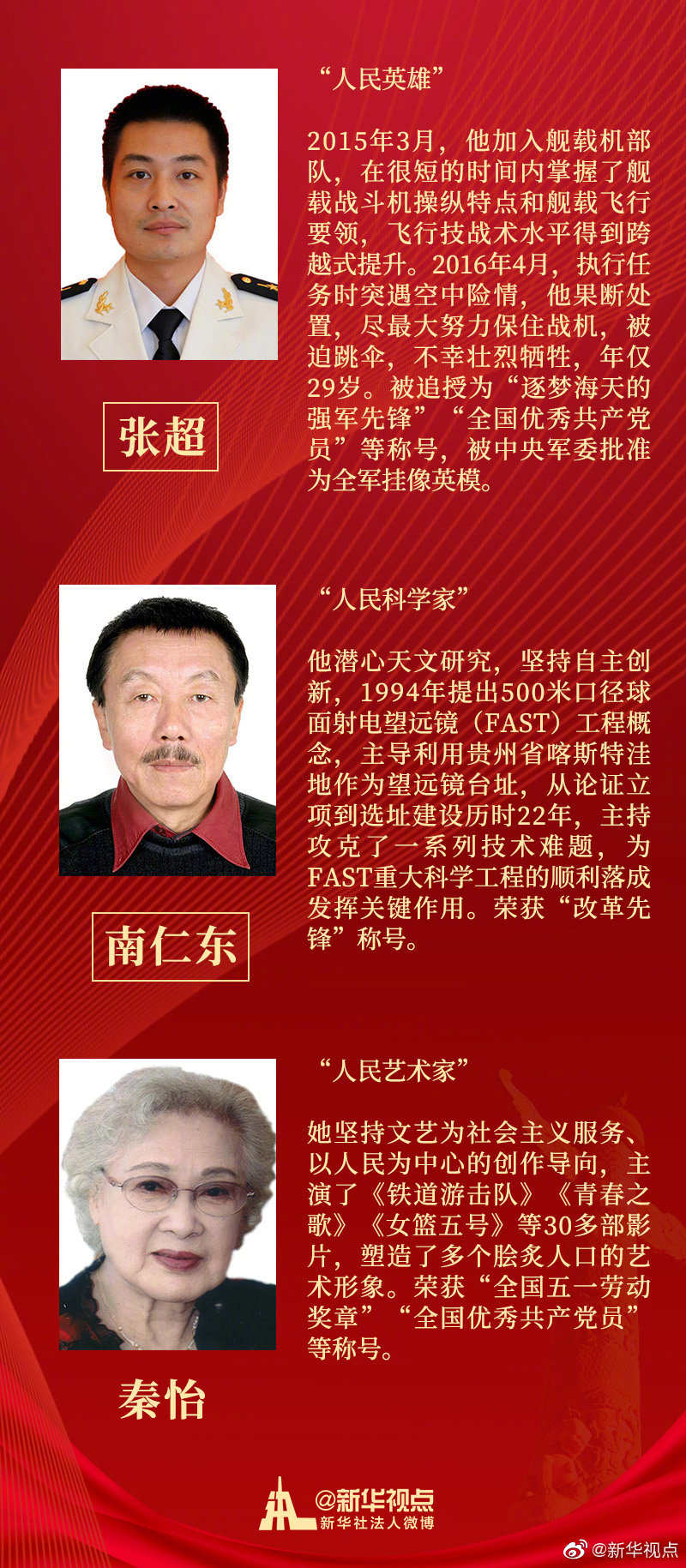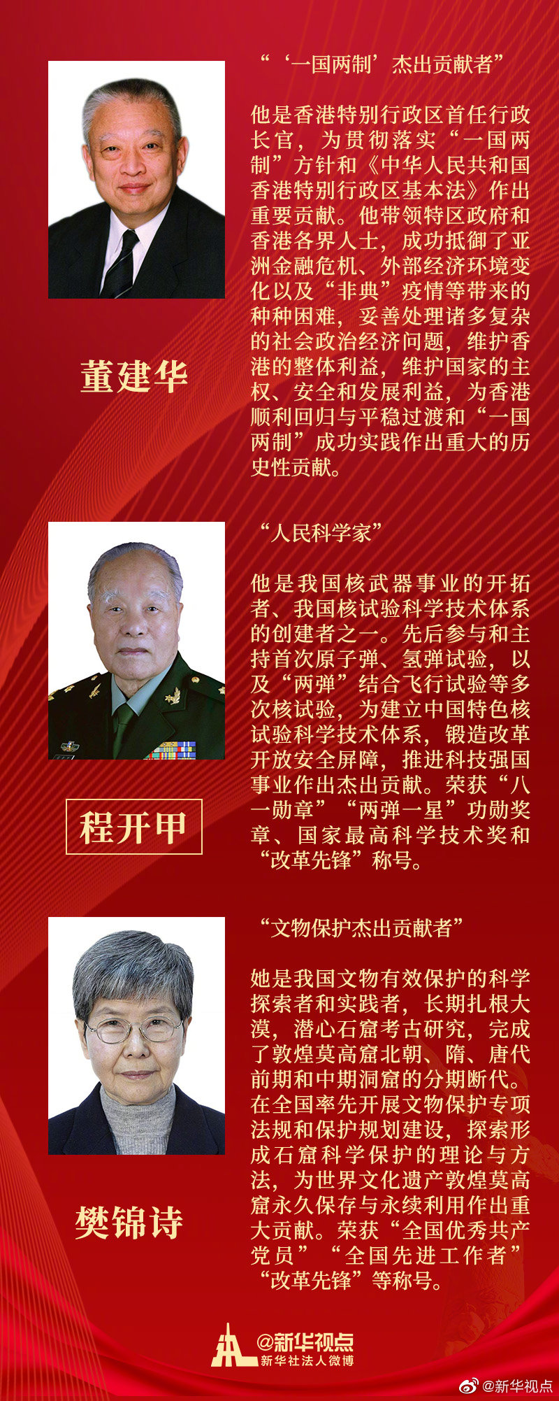 南仁東、董建華、于漪、王蒙、王有德等28人獲授國(guó)家榮譽(yù)稱號(hào)。他們與時(shí)代同行、砥礪奮進(jìn),為共和國(guó)的事業(yè)鞠躬盡瘁,不朽的“鋼鐵精神”將永遠(yuǎn)激勵(lì)著我們。為這些閃亮的名字點(diǎn)贊!轉(zhuǎn)發(fā)傳遞,致敬功勛!
