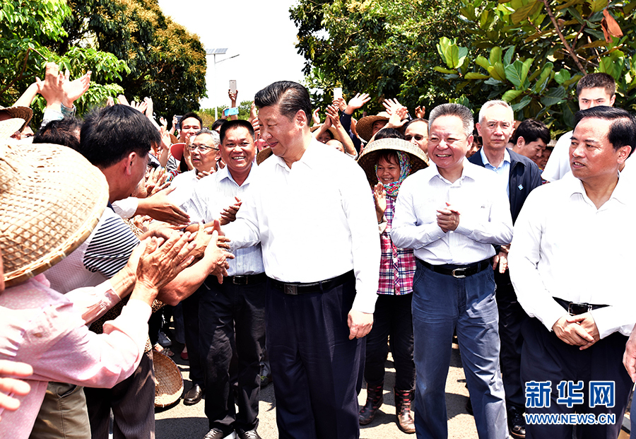 4月11日至13日,中共中央總書記、國家主席、中央軍委主席習近平在海南考察。這是4月13日上午,習近平在??谑行阌^石山鎮施茶村考察時,同村民親切交談。新華社記者 李學仁 攝