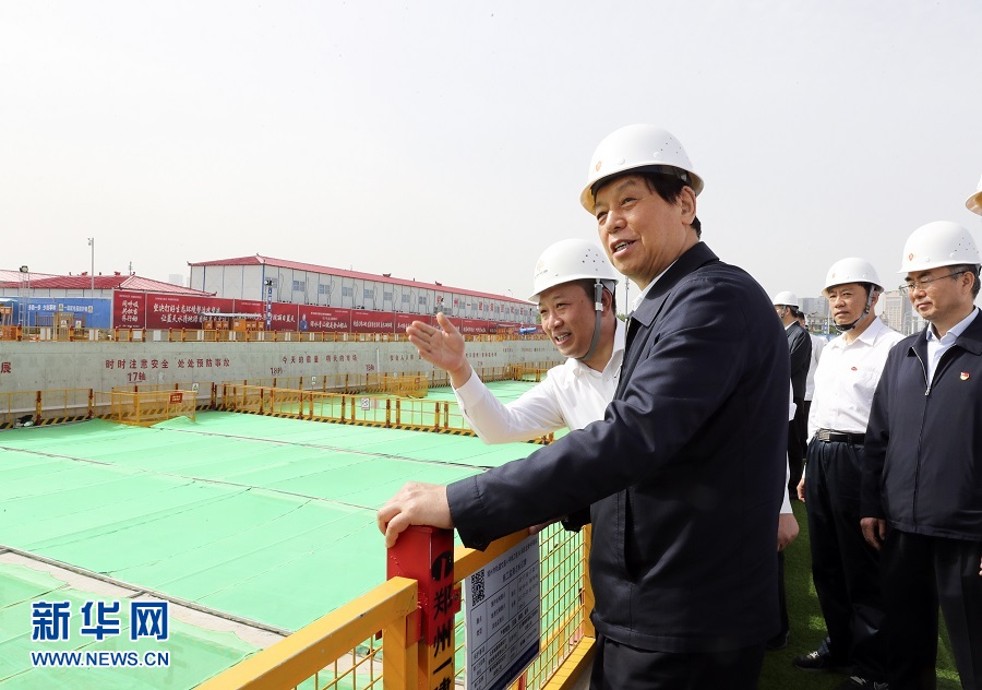 5月24日至28日,中共中央政治局常委、全國人大常委會委員長栗戰(zhàn)書在河南檢查大氣污染防治法實施情況。這是5月27日,栗戰(zhàn)書在鄭州市軌道交通4號線龍湖中環(huán)路站建設工地檢查。新華社記者丁林攝