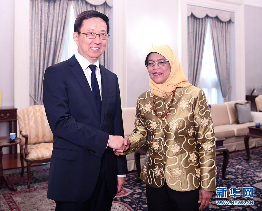 在同新方領(lǐng)導(dǎo)人會(huì)見時(shí),韓正轉(zhuǎn)達(dá)了習(xí)近平主席、李克強(qiáng)總理對(duì)哈莉瑪總統(tǒng)、李顯龍總理的親切問候,哈莉瑪和李顯龍表示感謝并請(qǐng)韓正轉(zhuǎn)達(dá)他們對(duì)中國領(lǐng)導(dǎo)人的良好祝愿。