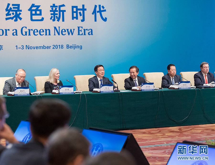 新華社北京11月2日電(記者王卓倫)中共中央政治局常委、國務院副總理、中國環境與發展國際合作委員會主席韓正2日在北京出席國合會2018年年會開幕式并講話。本次年會以“創新引領綠色新時代”為主題。
