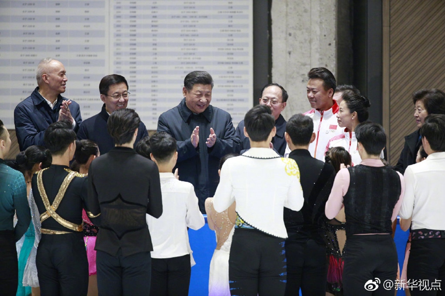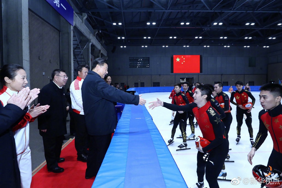 在位于北京石景山首鋼園區(qū)的國(guó)家冬季運(yùn)動(dòng)訓(xùn)練中心,習(xí)近平先后走進(jìn)速滑館和冰壺館,看望慰問(wèn)備戰(zhàn)的運(yùn)動(dòng)員、教練員?!坝?xùn)練強(qiáng)度大不大?”“從事這項(xiàng)運(yùn)動(dòng)多長(zhǎng)時(shí)間啦?”“生活上有哪些困難?”“國(guó)際上哪些競(jìng)爭(zhēng)對(duì)手最強(qiáng)?”總書(shū)記問(wèn)得仔細(xì)。得知運(yùn)動(dòng)員們充滿信心,總書(shū)記十分欣慰。他勉勵(lì)大家說(shuō),舉辦北京冬奧會(huì)、冬殘奧會(huì),中國(guó)冰雪運(yùn)動(dòng)將會(huì)上一個(gè)大臺(tái)階。這是百年不遇的歷史機(jī)遇,會(huì)應(yīng)運(yùn)而生一批高水平優(yōu)秀運(yùn)動(dòng)員。習(xí)近平強(qiáng)調(diào),體育強(qiáng)則國(guó)家強(qiáng),國(guó)家強(qiáng)則體育強(qiáng)。通過(guò)北京冬奧會(huì)把我國(guó)冬季冰雪運(yùn)動(dòng)發(fā)展起來(lái),這就是我們的希望。(記者張曉松、鞠鵬、謝環(huán)馳、劉彬)?