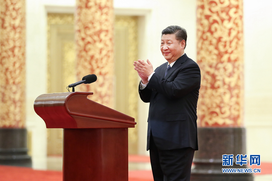 2月20日,黨和國家領導人習近平、李克強、栗戰書、汪洋、王滬寧、趙樂際、韓正等在北京人民大會堂會見探月工程嫦娥四號任務參研參試人員代表。習近平發表重要講話。 新華社記者黃敬文攝