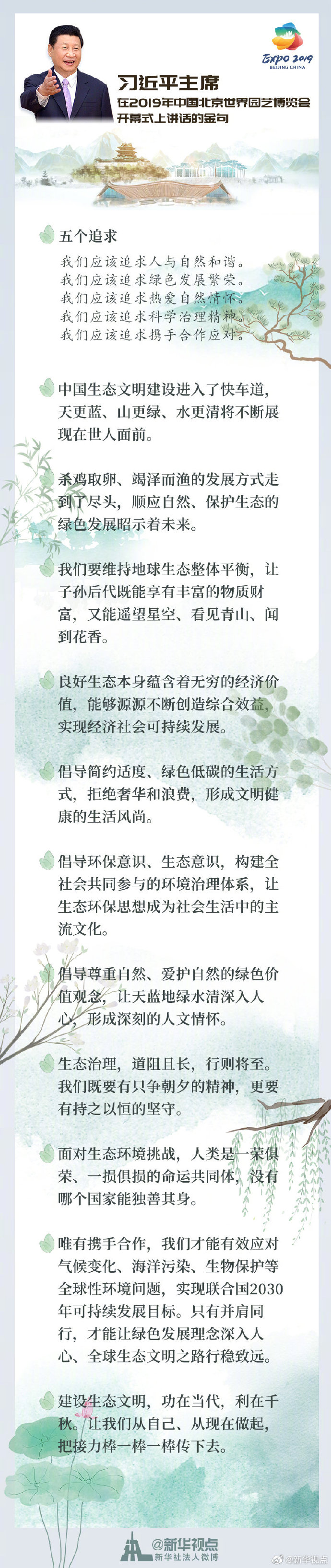 習近平主席28日出席2019年中國北京世界園藝博覽會開幕式并發表講話,傳遞的綠色發展理念直抵人心。詳情請戳圖看金句↓ ????